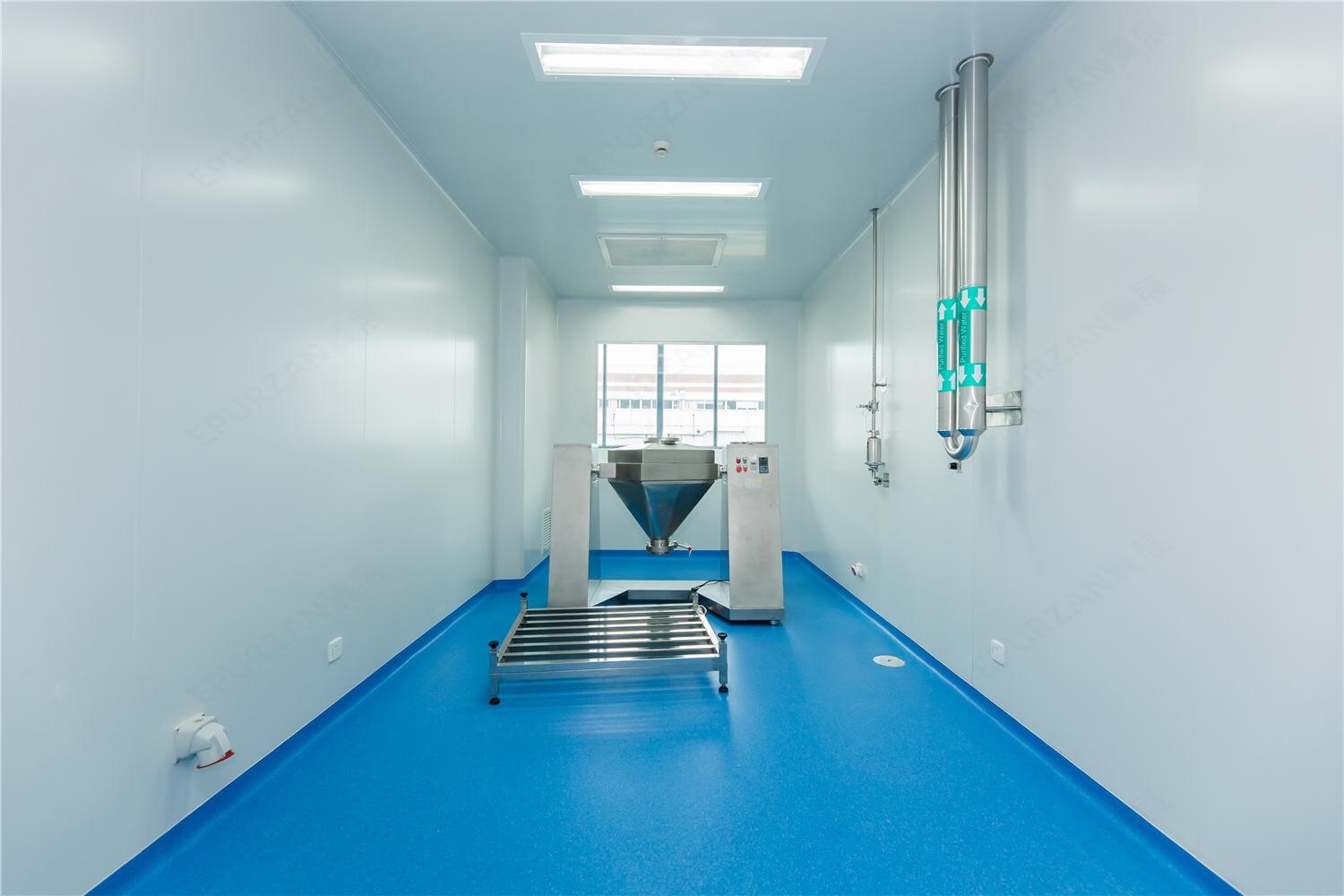 GMP车间,净化厂房墙、顶板材一般多采用50mm厚的夹芯彩钢板制造,其特点为美观、刚性强。圆弧墙角、门、窗框等一般采用专用氧化铝型材制造。